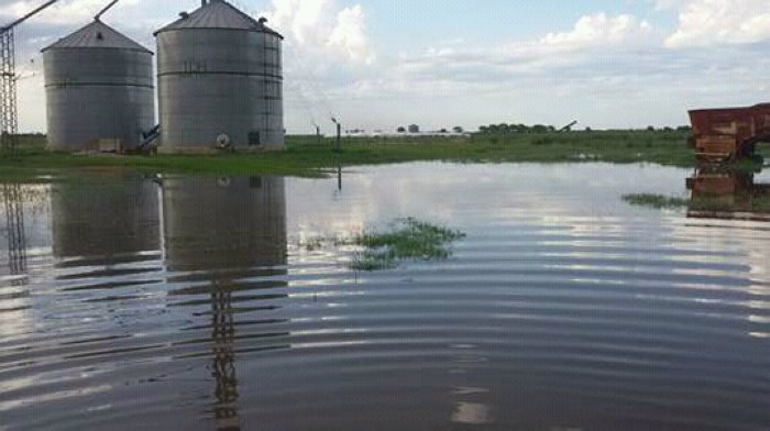 Una gran masa de agua se mueve de sur a norte e ingresa a la localidad por el sector suroeste. Además los campos ubicados al este no pueden escurrir por taponamientos de cunetas realizados por productores de Santa Fe