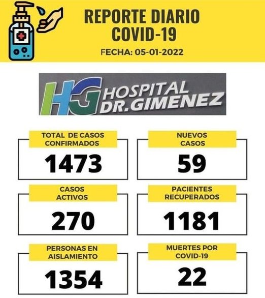 En el reporte brindado este miércoles por el Hospital Giménez, se informó que se registraron otros 3 casos de coronavirus. Para destacar es la baja de activos que de 94 pasaron a 78. También hay 180 aislados menos