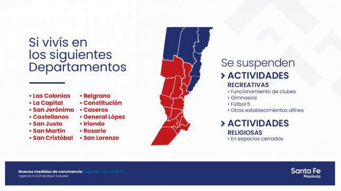 Estas restricciones afectan a los siguientes distritos: Las Colonias, La Capital, San Jerónimo, Castellanos, San Justo, San Martín, San Cristóbal, Belgrano, Constitución, Caseros, General López, Iriondo, Rosario y San Lorenzo.