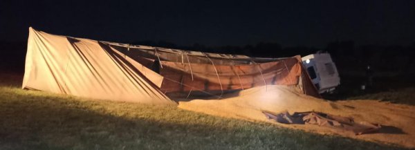 Como consecuencia, los dos ocupantes del auto sufrieron heridas graves por lo que fueron derivados a Sunchales. En relación a los camiones que transportaban maíz, uno de ellos volcó completamente.