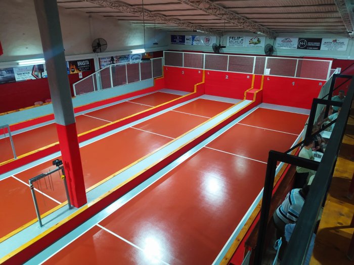 Luego del corte de cintas, Amanda, esposa de "Tebi" Soldano y su hijos, hicieron rodar las primeras bochas en las flamantes canchas. La obra también significó la construcción de baños, colocación de poliuretano en el techo, la realización de un altillo que usará como tribuna, tableros electrónicos entre otras mejoras.