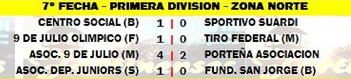ULTIMA FECHA: Sportivo - Juniors, Porteña - 9 de Freyre, San Jorge - 9 de Morteros, Tiro - Centro