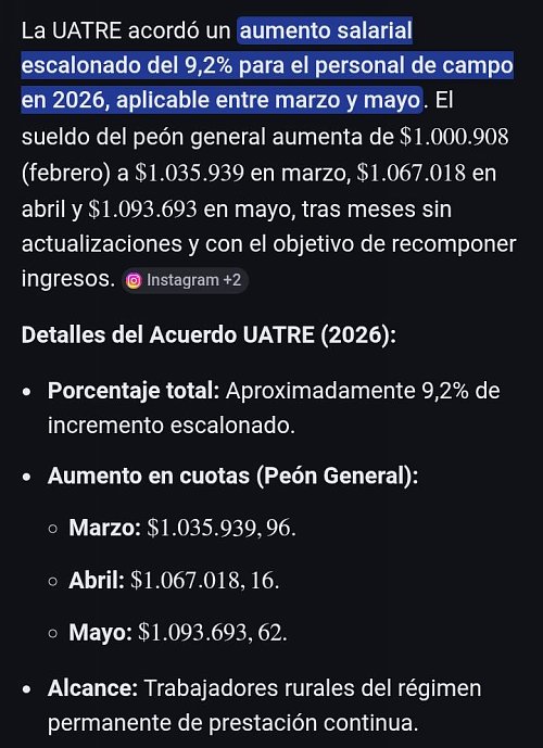El incremento se aplicará de manera escalonada entre marzo y mayo, en el marco de las negociaciones paritarias del sector, buscando recomponer el poder adquisitivo de los empleados rurales